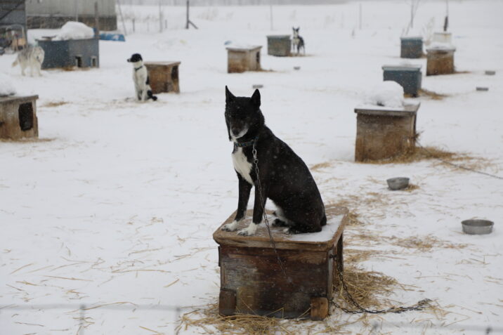 鹿追町の「マッシングワークス」(ホテルから車で約120分)に行き、同社の犬ぞりのサービスを体験します。